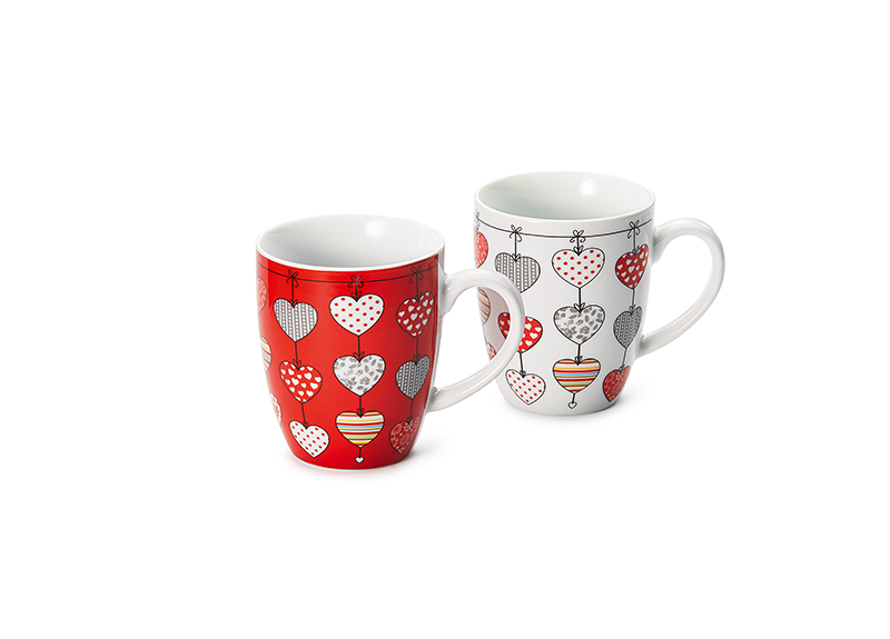 Das 2er Set Tassen ist aus Porzellan und mit frischen Dekoren ausgestattet. Sie sind sehr gut für Kaffee, Tee oder Kakao geeignet.